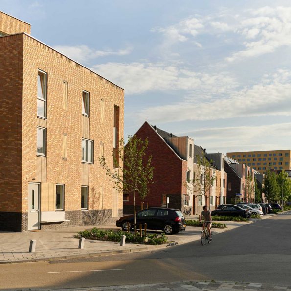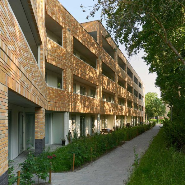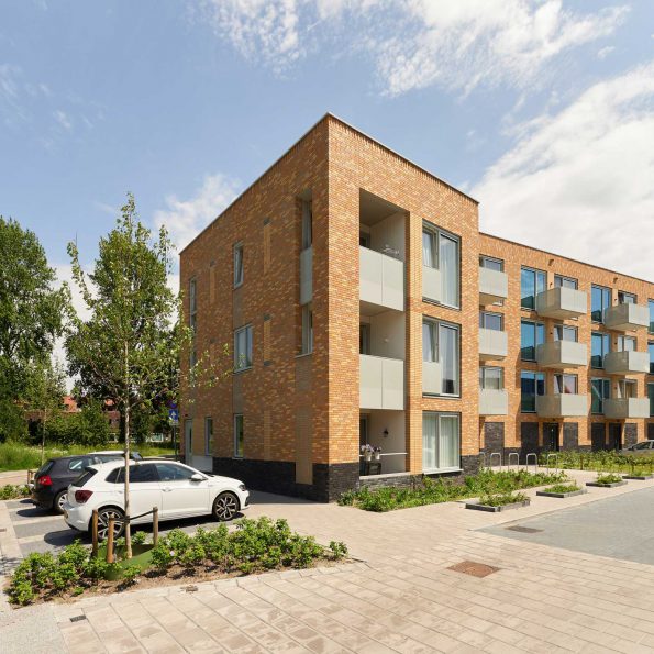 Hoewel de individuele appartementen herkenbaar zijn aan de gevelopeningen en de balkons, ligt de nadruk op de visuele kwaliteit van het geheel. Daarbij zijn de galerijen binnen de metselwerk gebouwcontour gepositioneerd en wordt de centrale entree herkenbaar door de nuance in de maatvoering van de gevelopeningen.