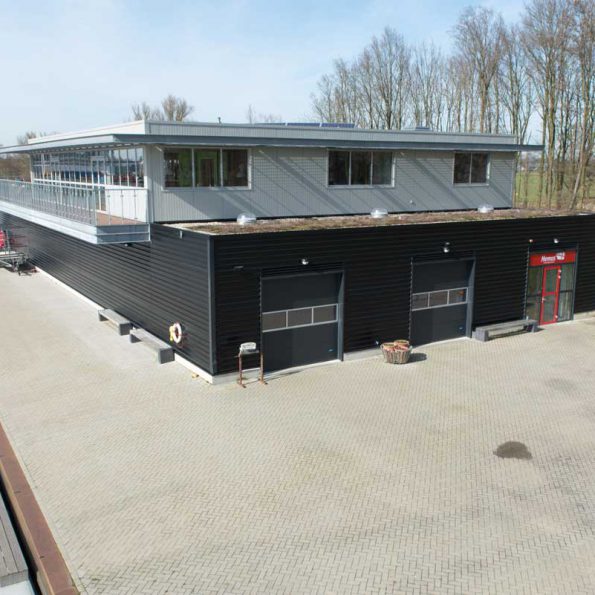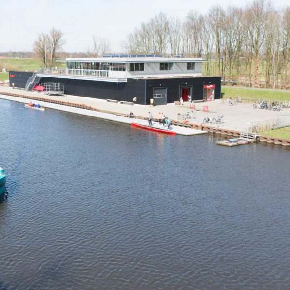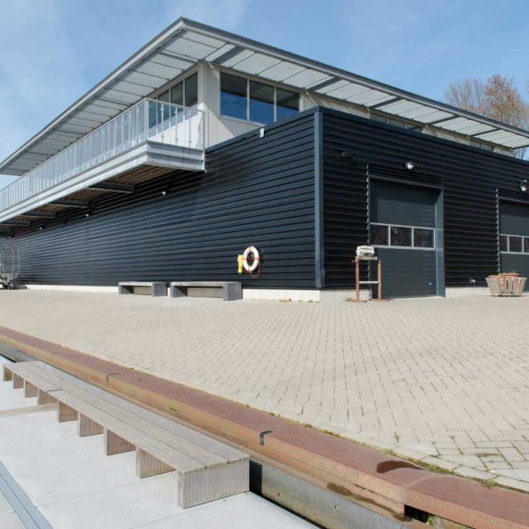 Het ontwerp is gebaseerd op een eenvoudig principe van alle koude (botenopslag) programma-onderdelen beneden in een langwerpig volume en de verblijfsfuncties die uitzicht behoeven daar haaks boven, waarbij het uitzicht (terras en verenigingsruimte) over de langsrichting van de Eem een belangrijk uitgangspunt is.