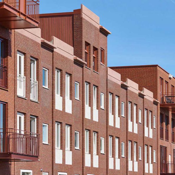12 stadswoningen en 32 portiek-etage woningen