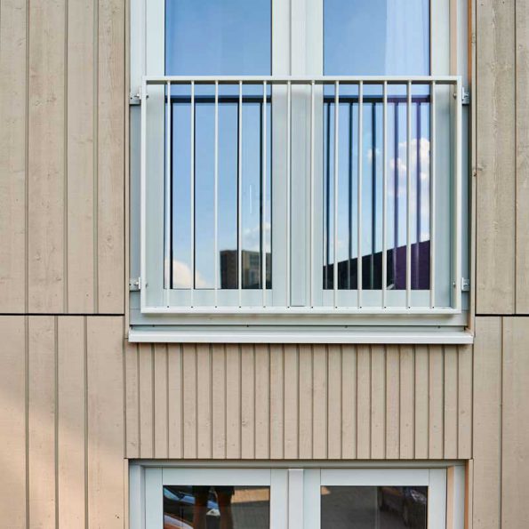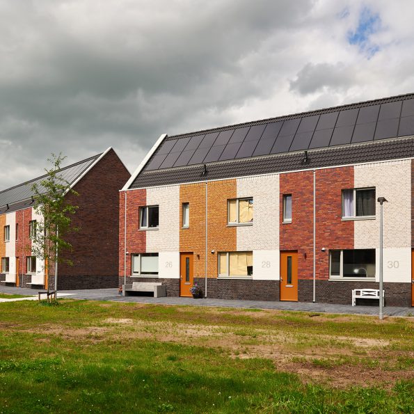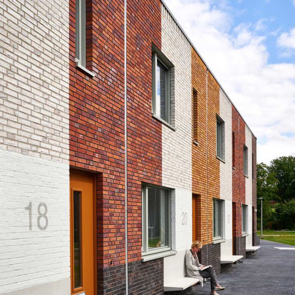 De gevels van de grondgebonden woningen zijn een herhaling van openingen, stroken metselwerk, vlak in het metselwerk gedetailleerde hemelwaterafvoeren en betonnen zitelementen. Een duidelijke ritmiek waarbij de stroken metselwerk zijn voorzien van afwijkende metselverbanden en de middelste stroken van een bijzondere beëindiging. De thematiek van de wisselende kleuren metselwerk wordt vanuit de naastgelegen project voortgezet. Daarnaast zijn zowel de grondgebonden woningen als het appartementenblok voorzien van een metselwerk plint